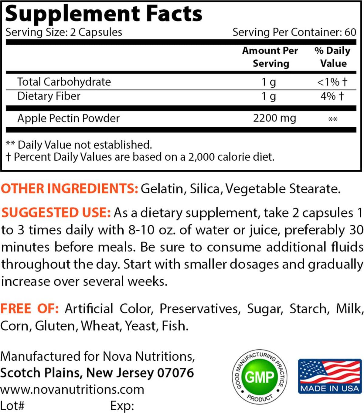 120 count, 700mg, apple pectin, capsules, gmp certified, nova nutritions, usa