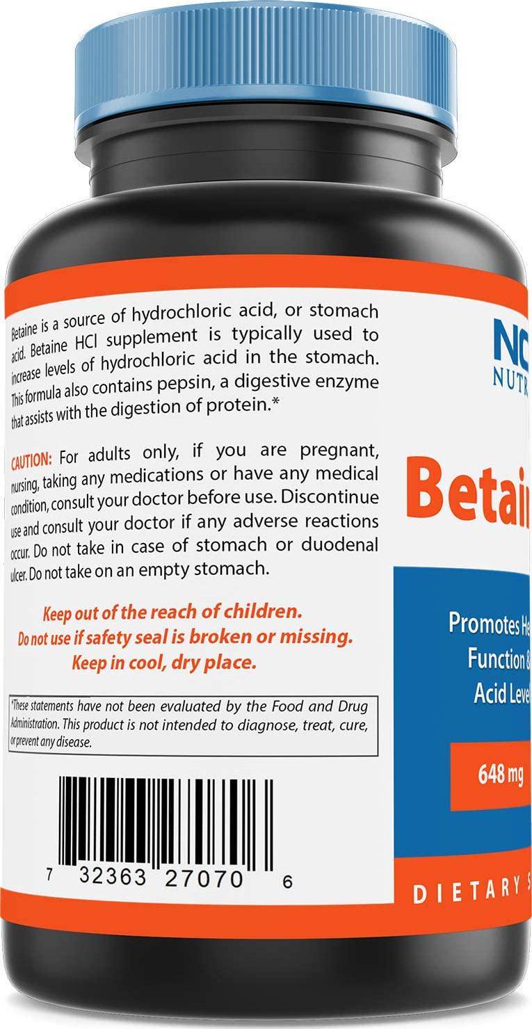- DIGESTION - Betaine HCl supplements are typically used to increase levels of hydrochloric acid in the stomach. This formula also contains pepsin, a digestive enzyme that assists with the digestion of protein.*