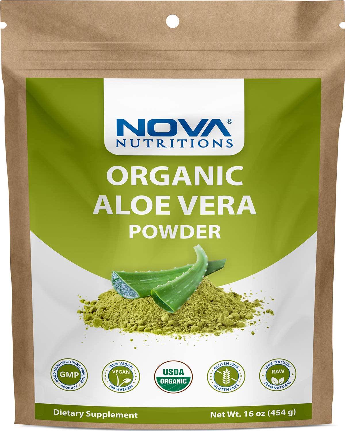 Nova Nutritions Certified Organic Aloe Vera Leaf Powder 16 OZ (454 gm) - Also Called Aloe Barbadensis