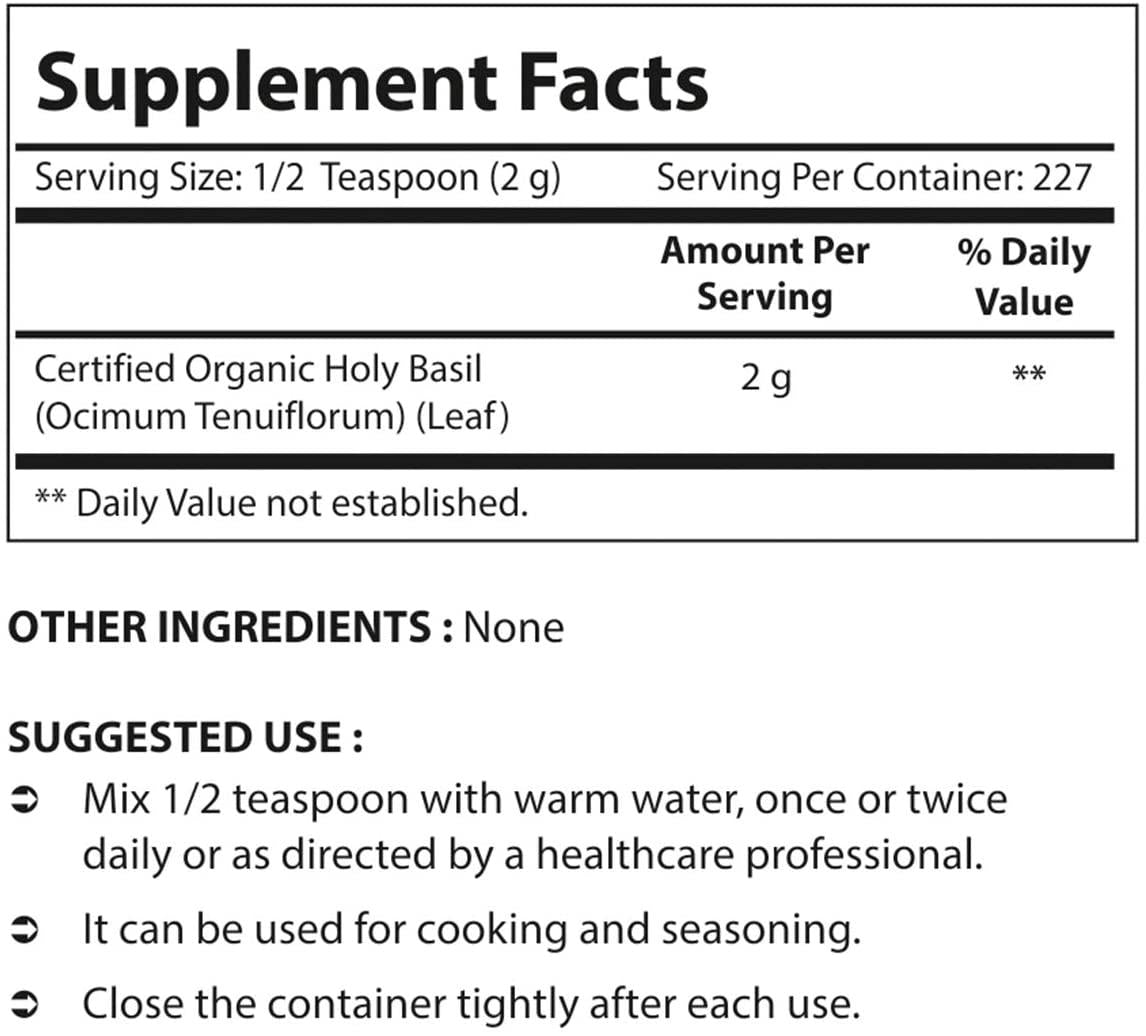 Nova Nutritions Certified Organic Holy Basil (Tulsi) Powder 16 OZ (454 gm) - Supports healthy immune function