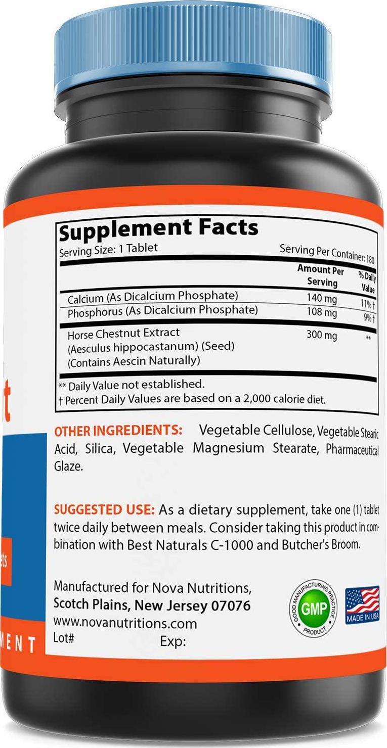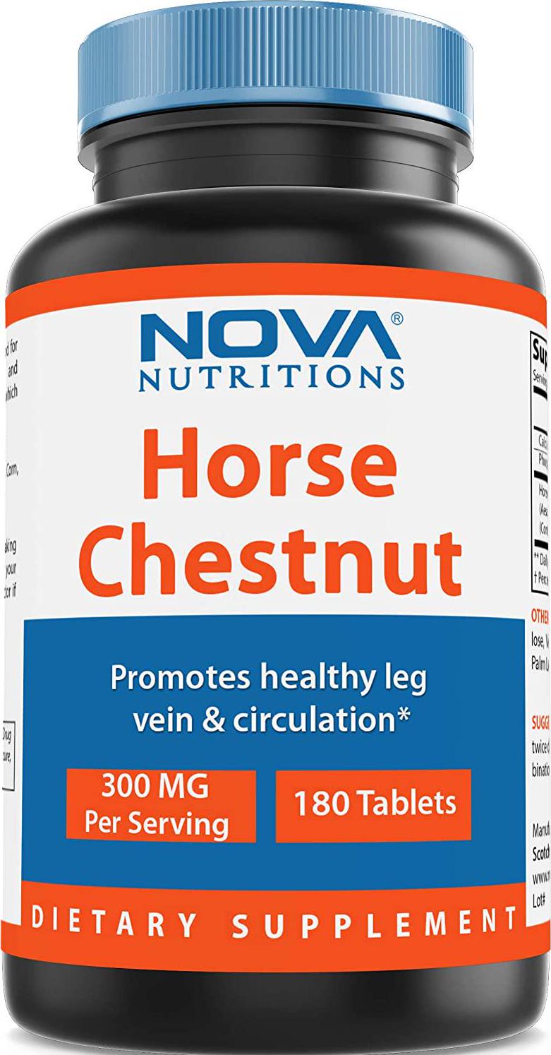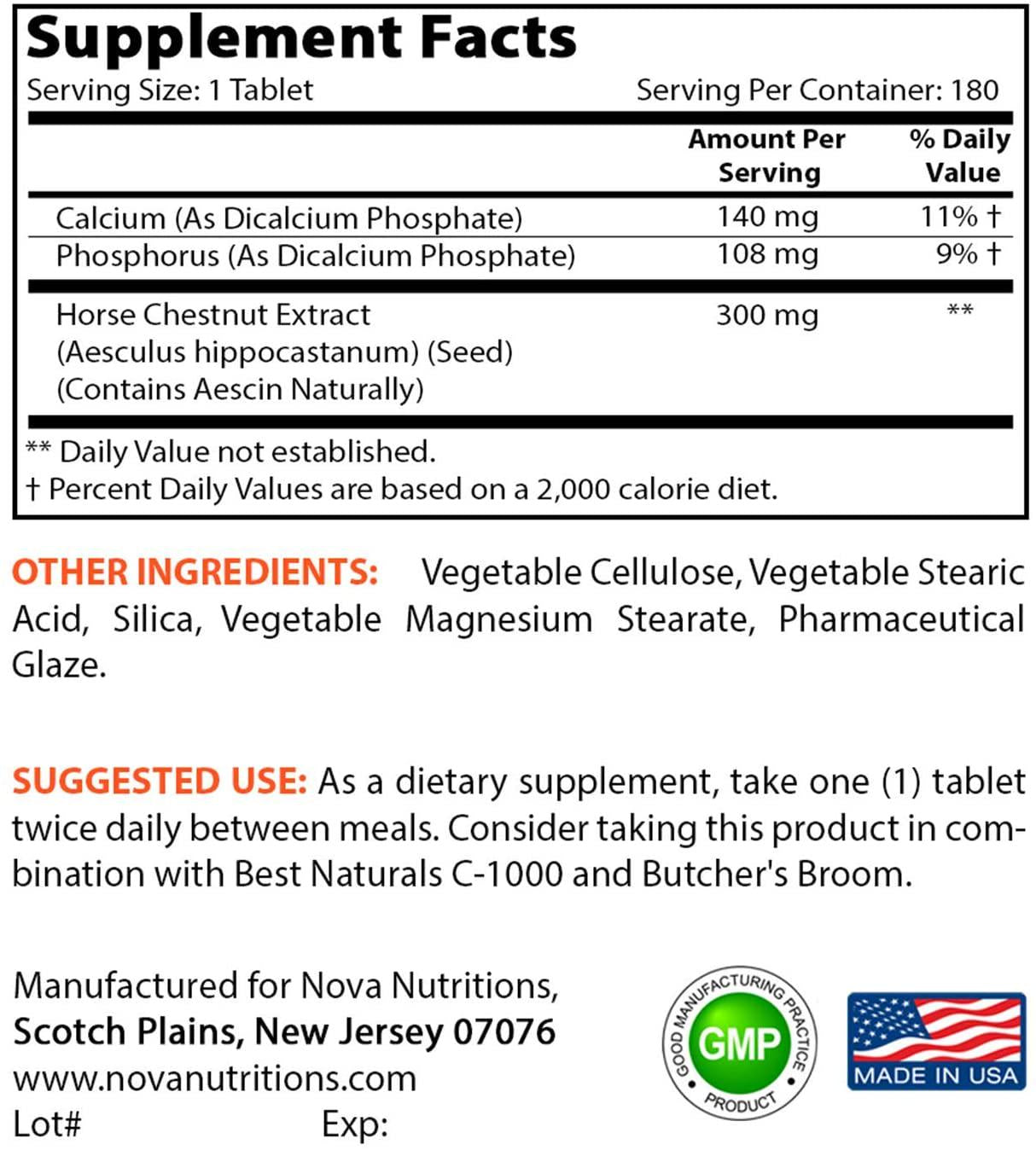 Nova Nutritions Horse Chestnut Seed Extract 300 mg (Non-GMO) Tablets Naturally Contains Aescin Which Promotes Healthy Leg Vein and Circulation 180 Count