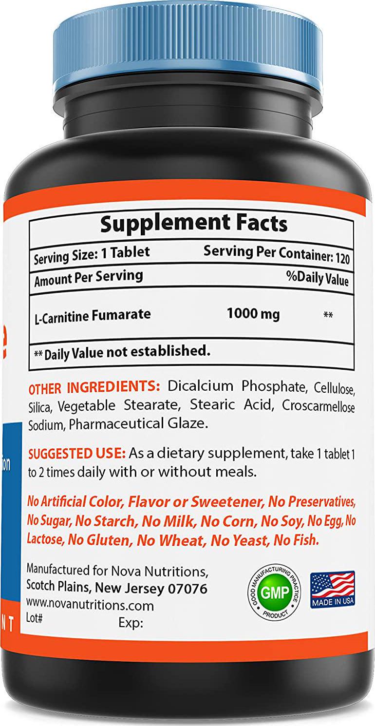 Nova Nutritions L-Carnitine 1000 mg 120 Tablets