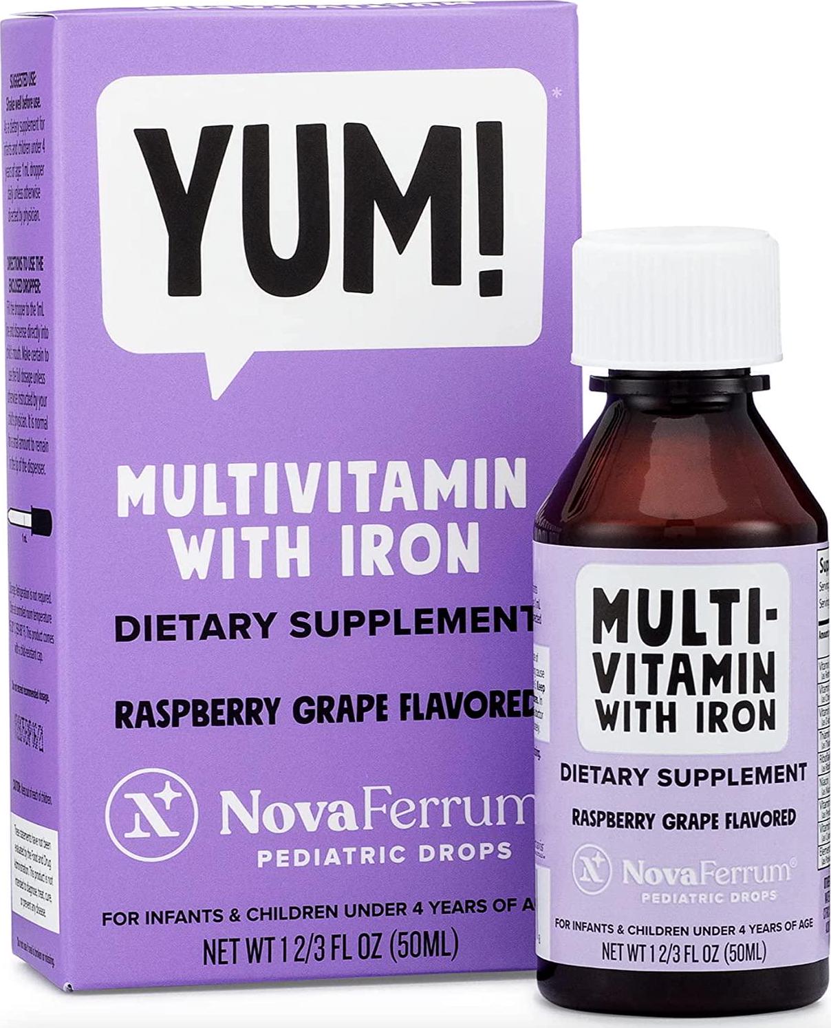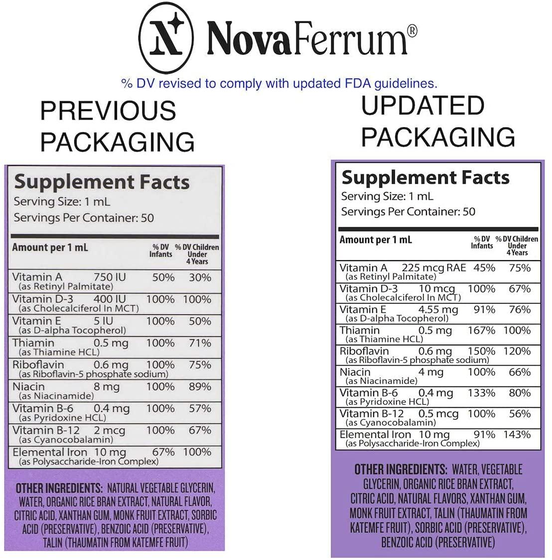 NovaFerrum Multivitamin with Iron Pediatric Drops is naturally sweetened and does not contain the extras you see in many Multivitamin with Iron supplements. Aside from having 8 essential vitamins and minerals, it contains both Vitamin D and iron. Our product is free of sugar, alcohol, dye, gluten. Un most liquid multivitamin with iron supplements that use iron salts, our patent-pending formula uses a Polysaccharide-Iron Complex. NovaFerrum has a great tasting raspberry-grape flavor and does not have the unpleasant metallic aftertaste you find in most other iron liquid multivitamins with iron supplements. NovaFerrum iron supplements are intended for the use in improving the nutritional status for the prevention and treatment of iron deficiency. NovaFerrum's main ingredient is of a Polysaccharide-Iron Complex and un iron salts; it does not ionize, reducing those side effects commonly associated with most iron supplements..