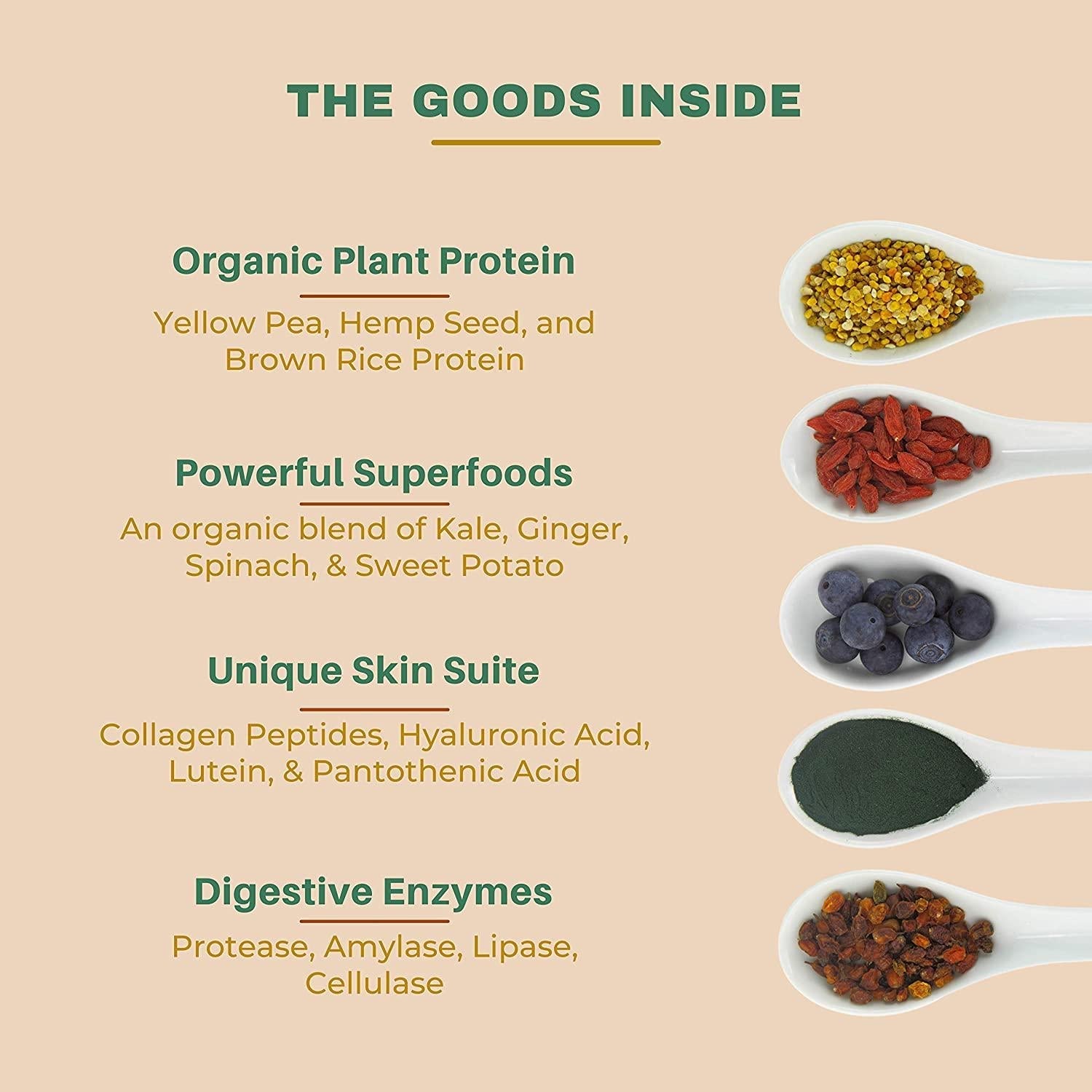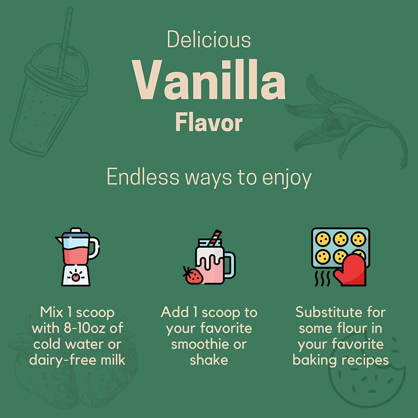 24g protein, dairy free, keto friendly, organic skin health, soy free, usa, vanilla plant protein powder
