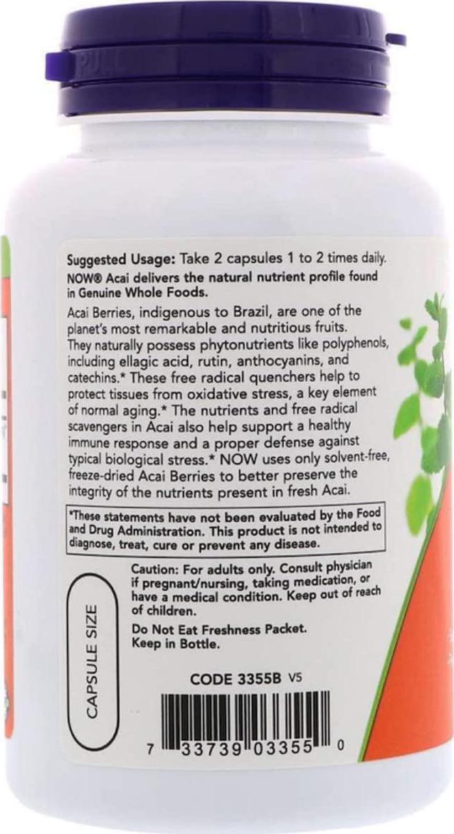 100 veg capsules, 500 mg, antioxidant, immune support, now acai, whole food supplement