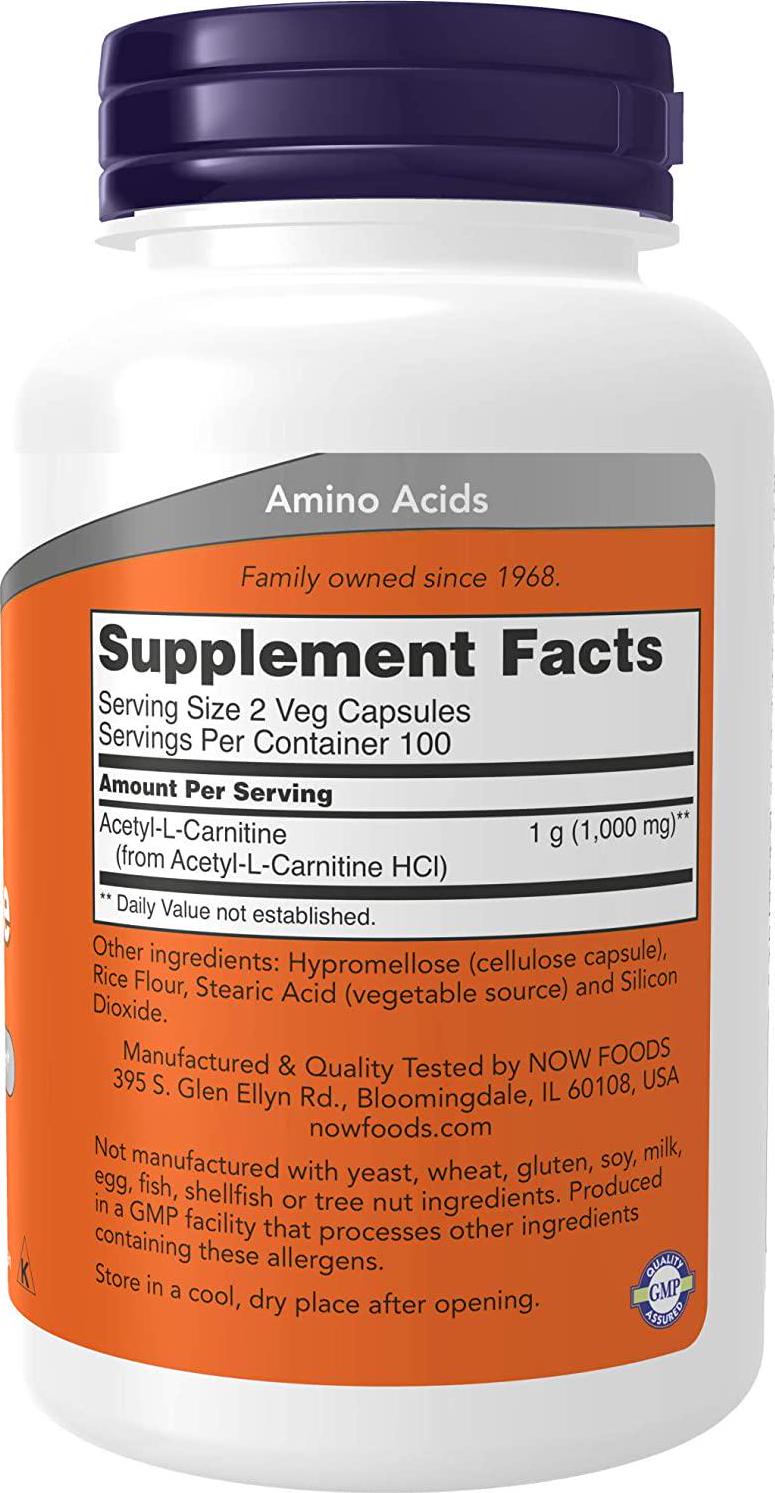 NOW Acetyl L-Carnitine 500mg, 200 Veg Capsules