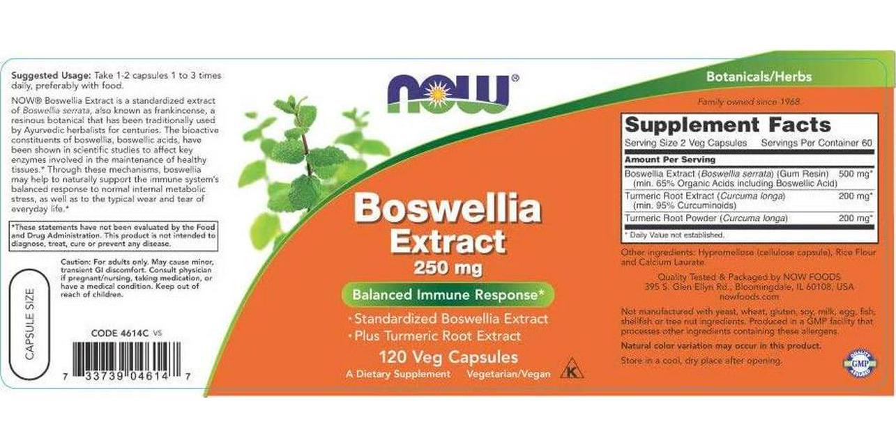 - BALANCED IMMUNE RESPONSE*: NOW Boswellia Extract is a standardized boswellia extract plus tumeric root extract in veggie capsules.