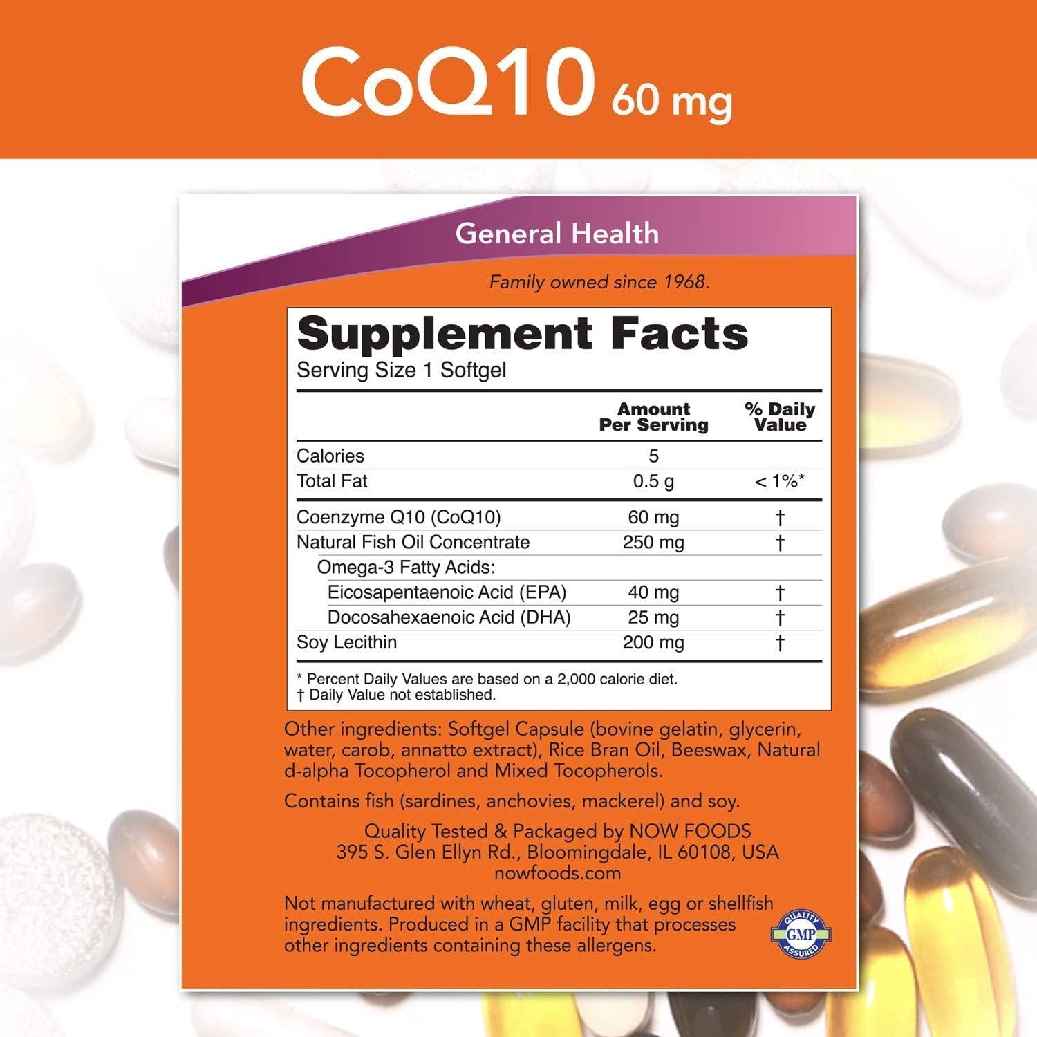 NOW Coq10 60mg With Omega-3, 60 Softgels