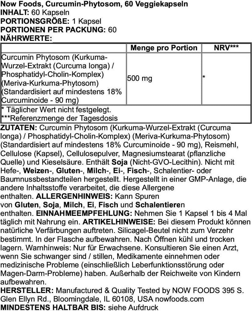 NOW Curcumin Phytosome,60 Veg Capsules