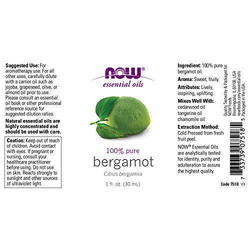 NOW Essential Oils, Bergamot Oil, Sweet Aromatherapy Scent, Cold Pressed, 100% Pure, Vegan, Child Resistant Cap, 1-Ounce NOW Essential Oils, Bergamot Oil, Sweet Aromatherapy Scent, Cold Pressed, 100% Pure, Vegan, Child Resistant Cap, 1-Ounce