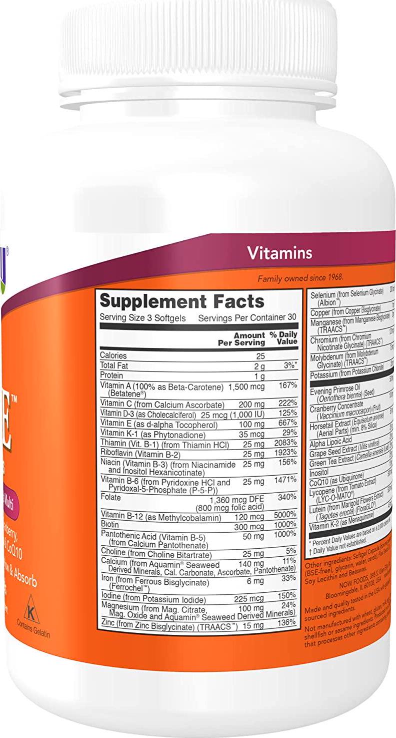 cardiovascular support, coq10, green tea, now eve female multi, softgels, women's multi