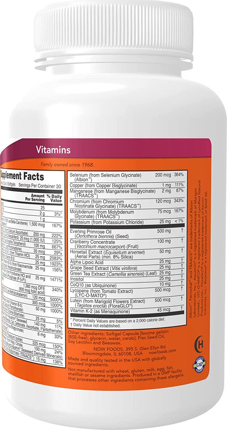 cranberry, evening primrose, now eve female multi, softgels, vitamins, women's multi