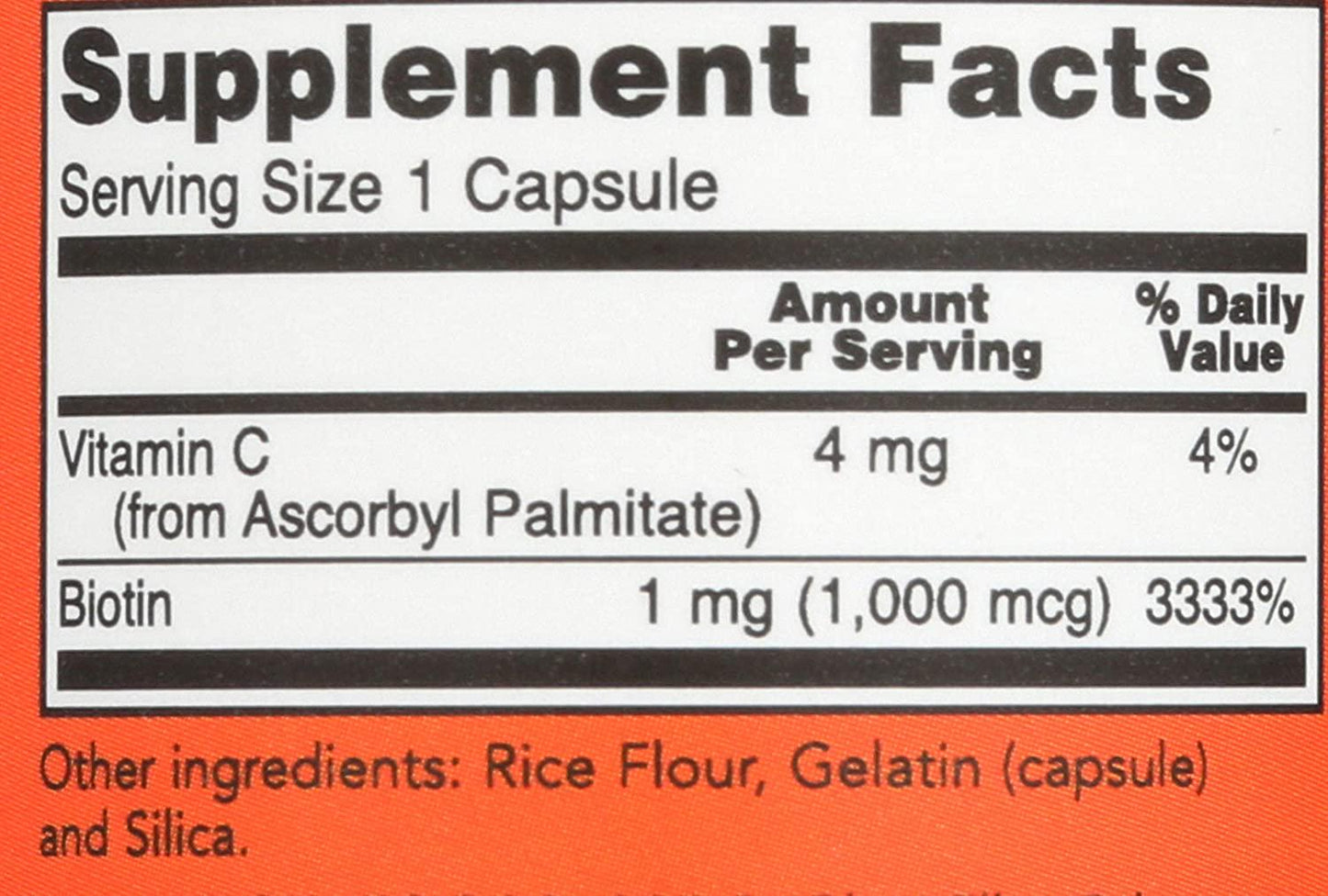 adults, biotin capsules, dietary supplement, hypoallergenic rice flour, now foods biotin 1000 mcg, vitamin c