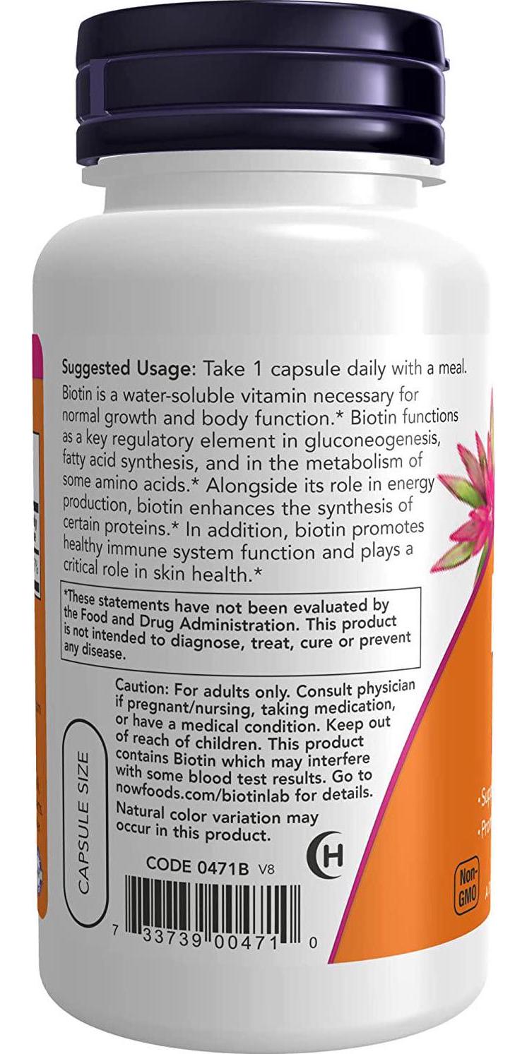 - NOW's Biotin Supplement, with 5,000 mcg, in Vegetarian/Vegan Capsules Supports Healthy Hair, Skin, and Nails
