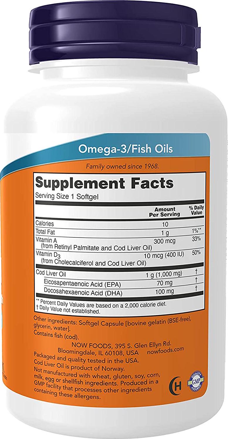 Now Foods Cod Liver Oil Soft Gels, 1000 mg, 90 Count