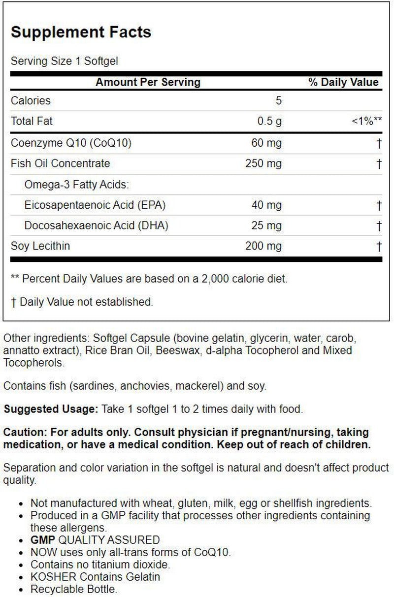 Now Foods Coq10 with Omega-3 Cardiovascular Health, 60Mg, 60Ct