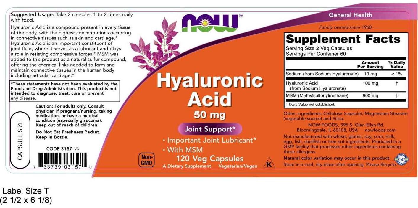 120 vcaps, hyaluronic acid, joint support, msm, now foods, supplement