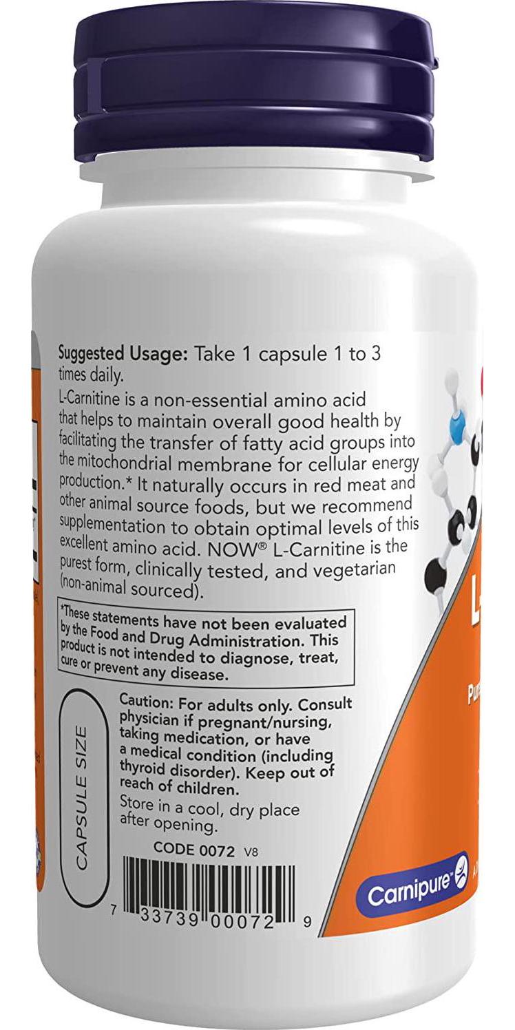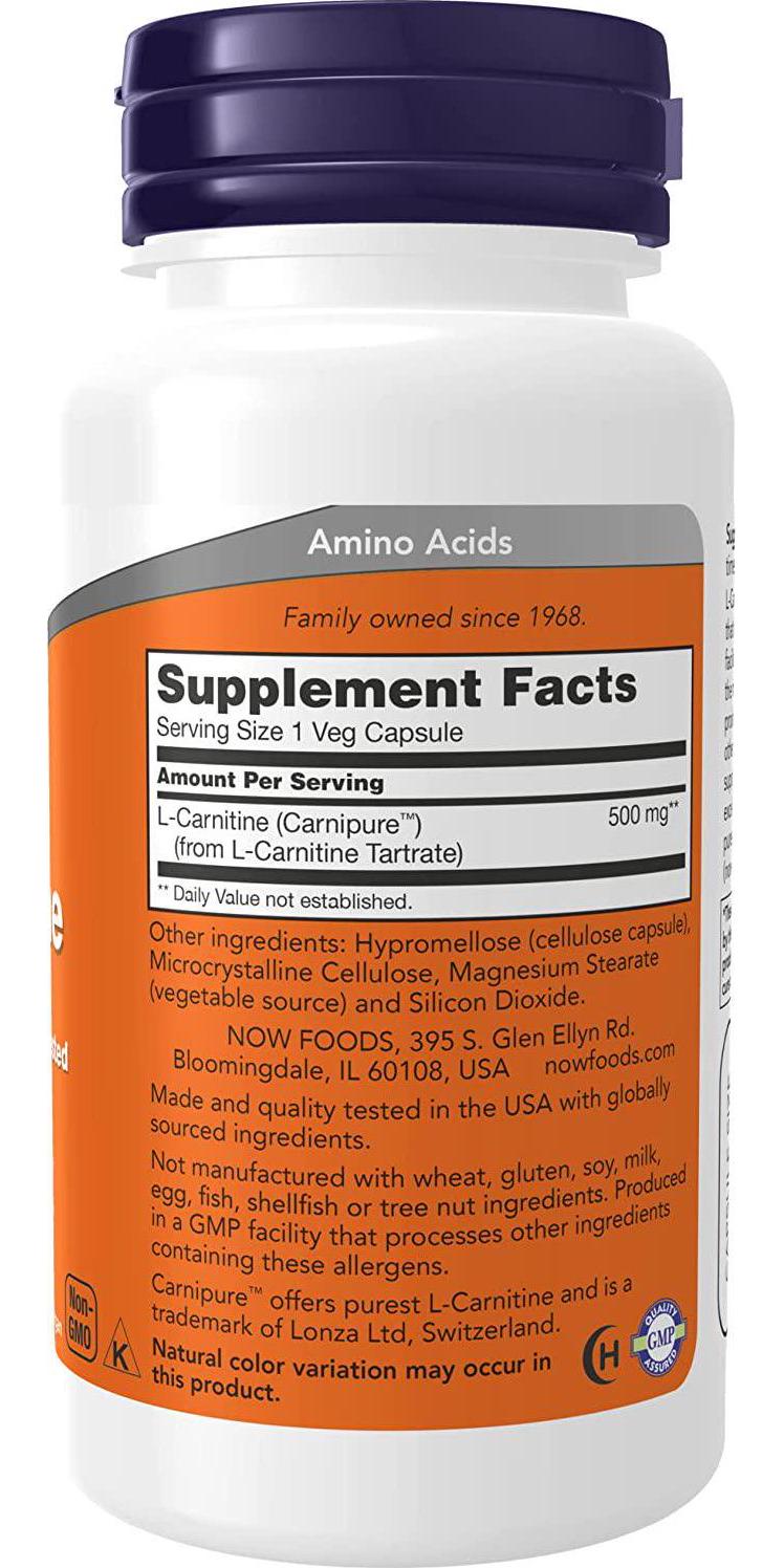 amino acid, energy production, l-carnitine 500mg, now foods, supplement, vegetarian