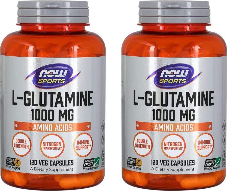 Now Foods L-Glutamine, Double Strength, 1000 mg, 120 Capsules, 2 Pack