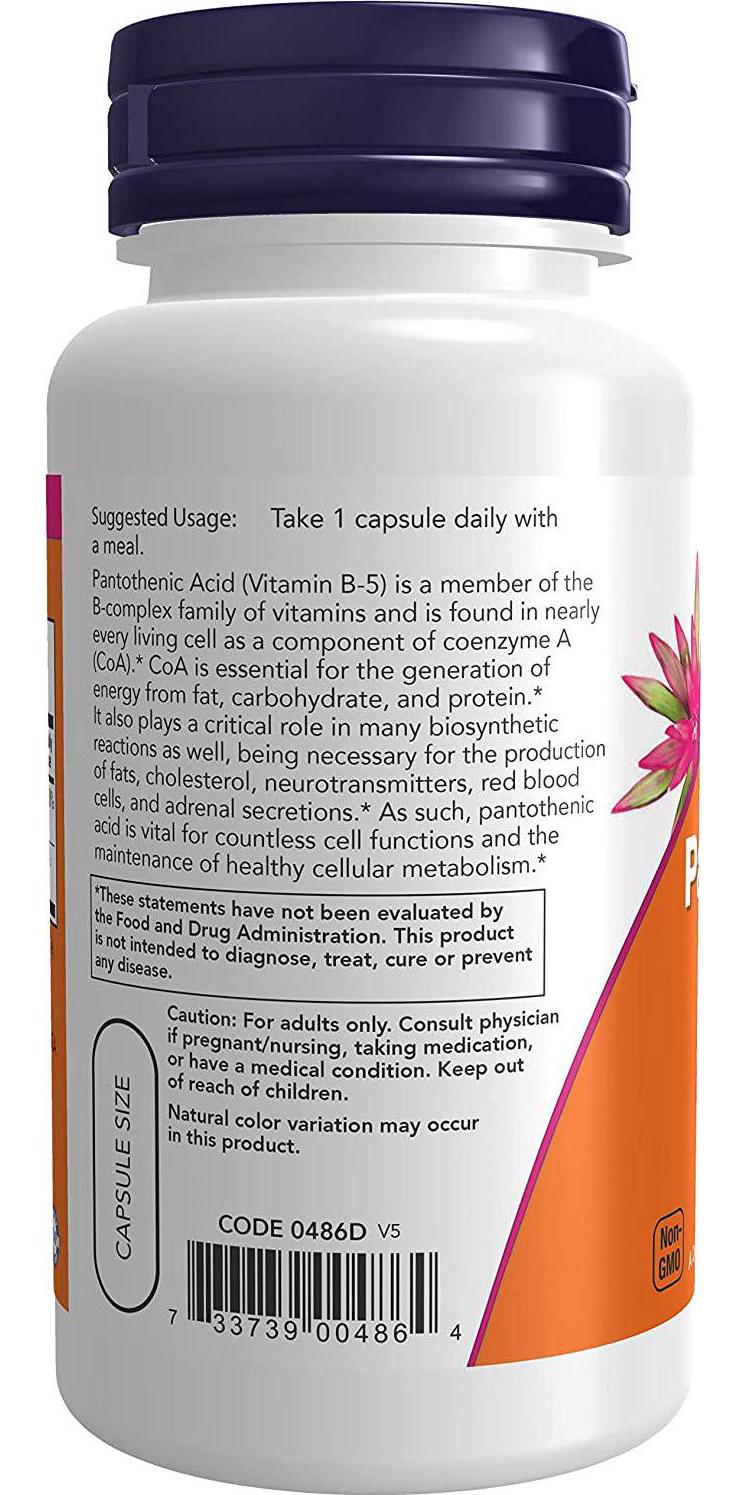 NOW Foods Pantothenic Acid 500mg, 100 Capsules (Pack of 1)