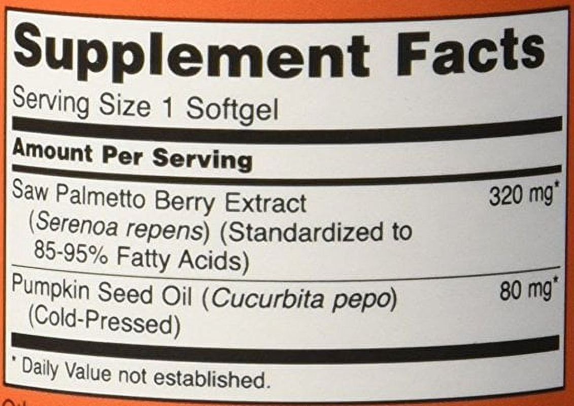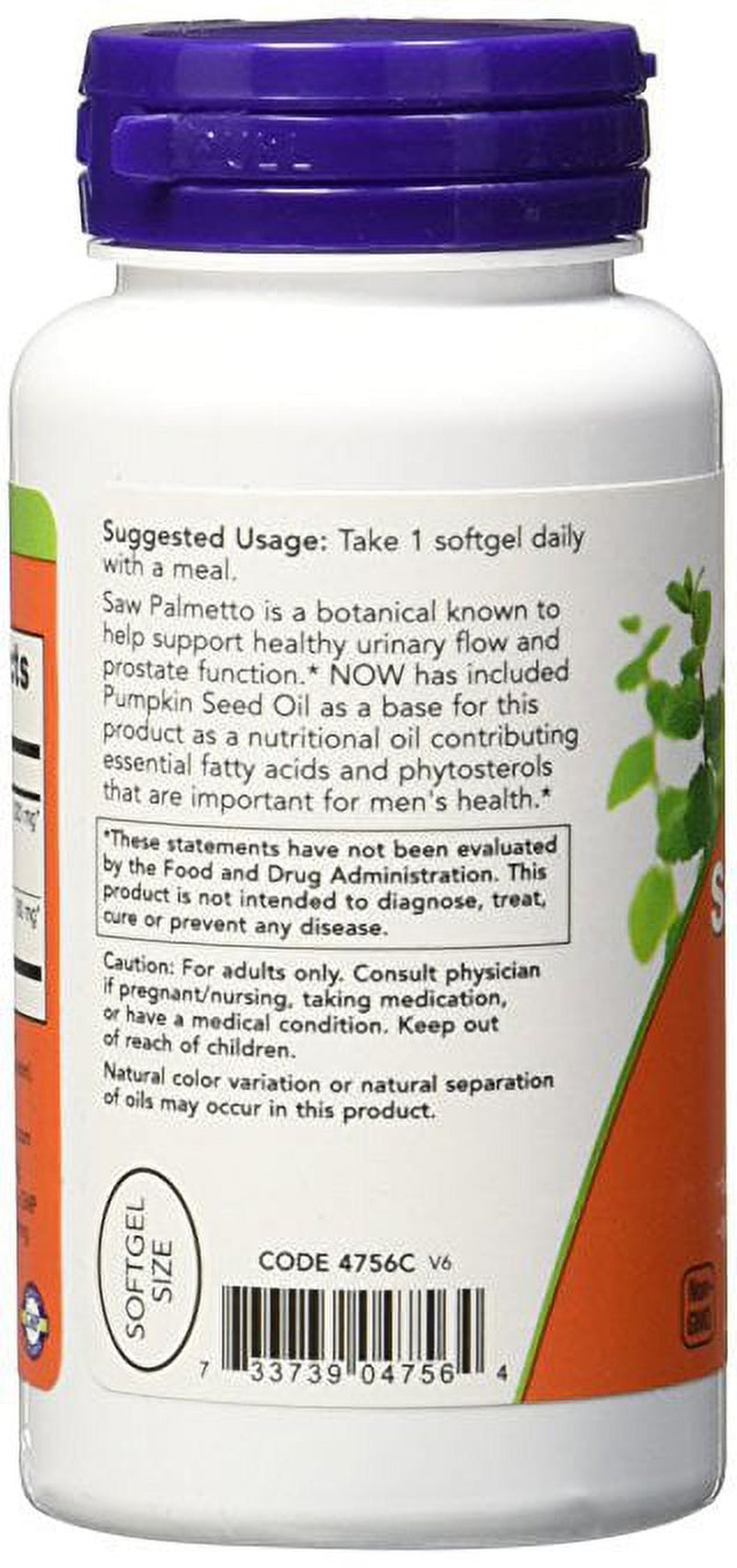 Saw Palmetto is a botanical known to help support healthy urinary flow and prostate function. NOW has included Pumpkin Seed Oil as a base for this product as a nutritional oil contributing essential fatty acids and phytosterols that are important for men's health.
