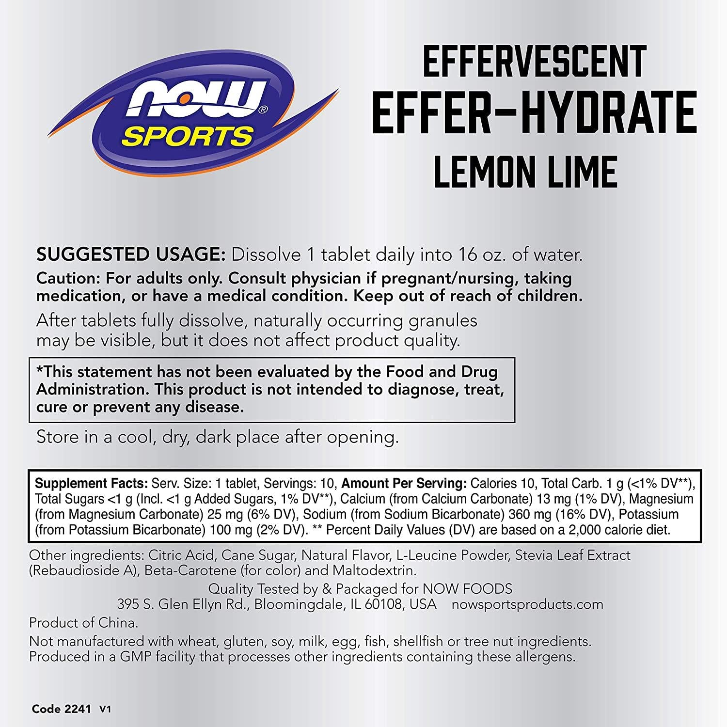 NOW Sports Nutrition, Effervescent Effer-Hydrate, Electrolyte Supplement, Recovery*, Lemon Lime, 10 Tablets