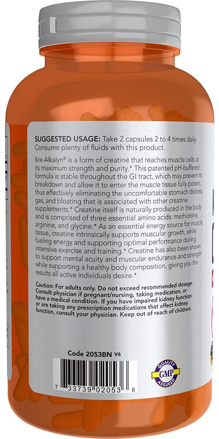 energy production, kre-alkalyn creatine, mass building, now sports, usa, veg capsules