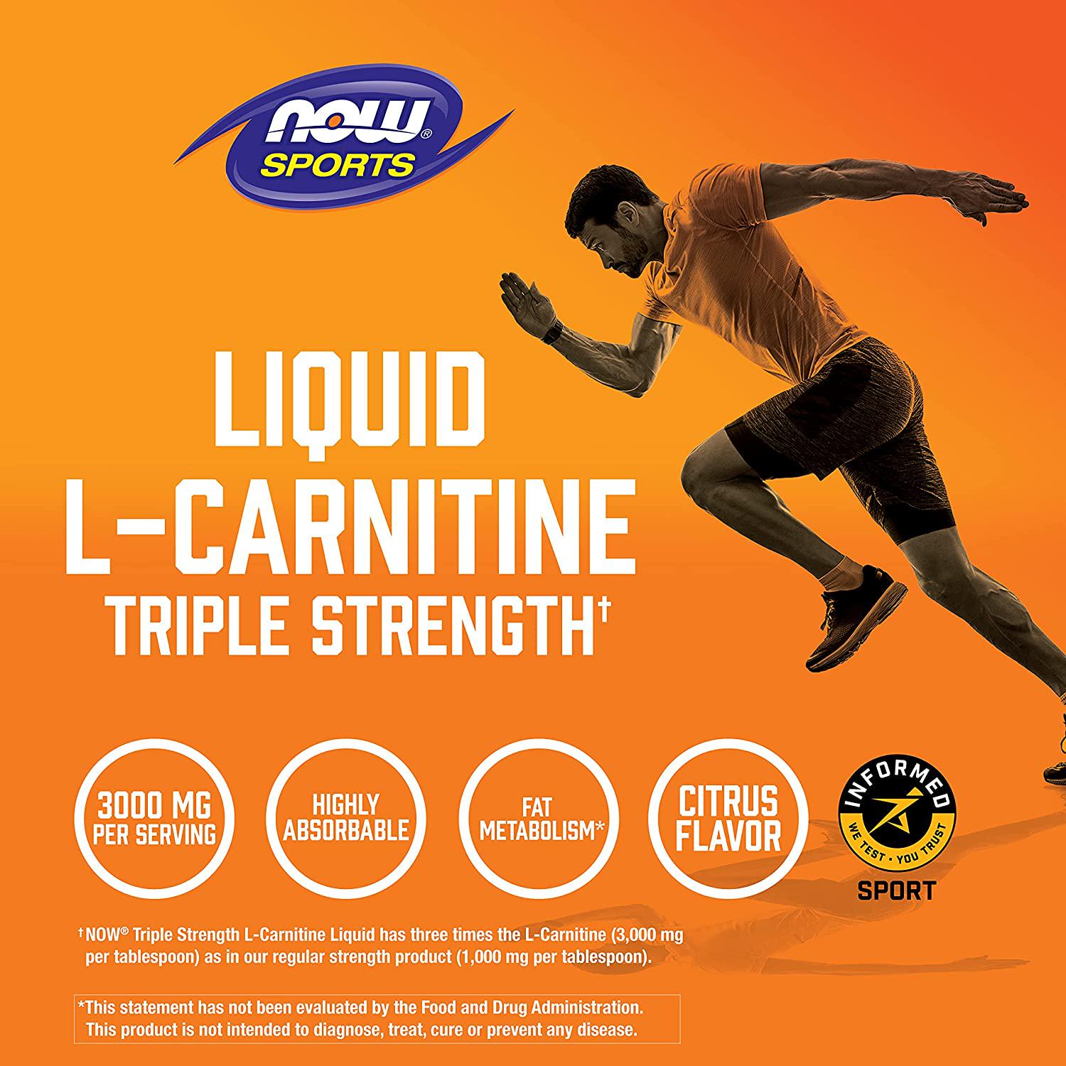 NOW Sports Nutrition, L-Carnitine Liquid, Triple Strength 3000 mg, Citrus, 16-Ounce