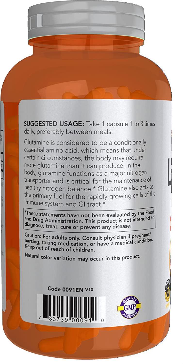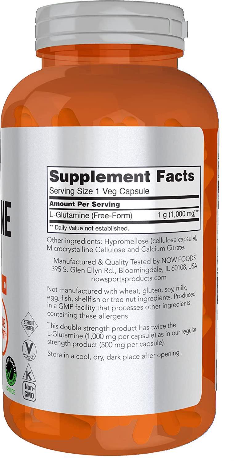 NOW Sports Nutrition, L-Glutamine, Double Strength 1,000 Mg, Amino Acid, 240 Veg Capsules