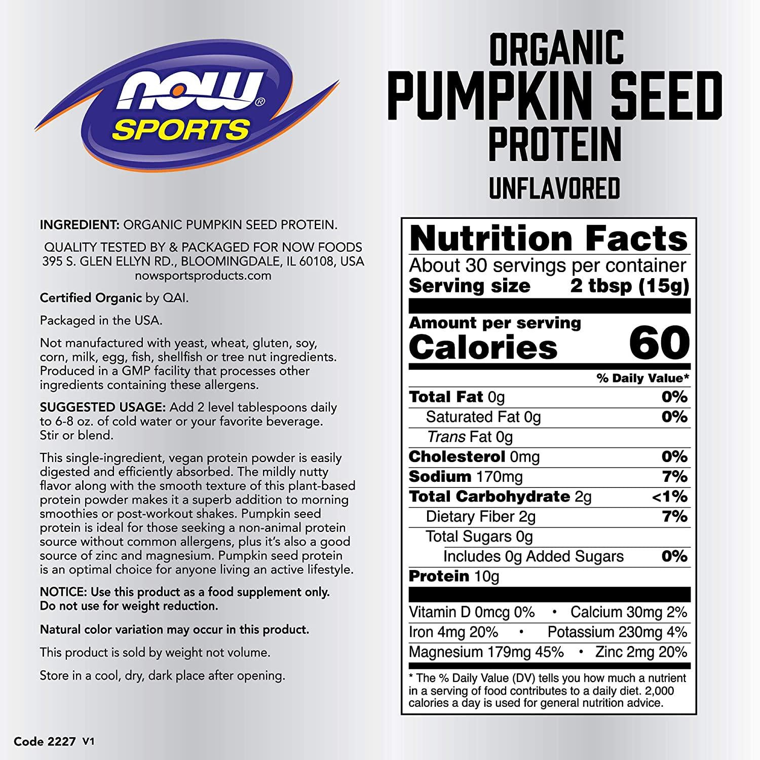 - UNFLAVORED/10 GRAMS OF PROTEIN PER SERVING: Pumpkin seed protein is ideal for those seeking a non-animal protein source without common allergens, plus it s also a good source of zinc and magnesium.