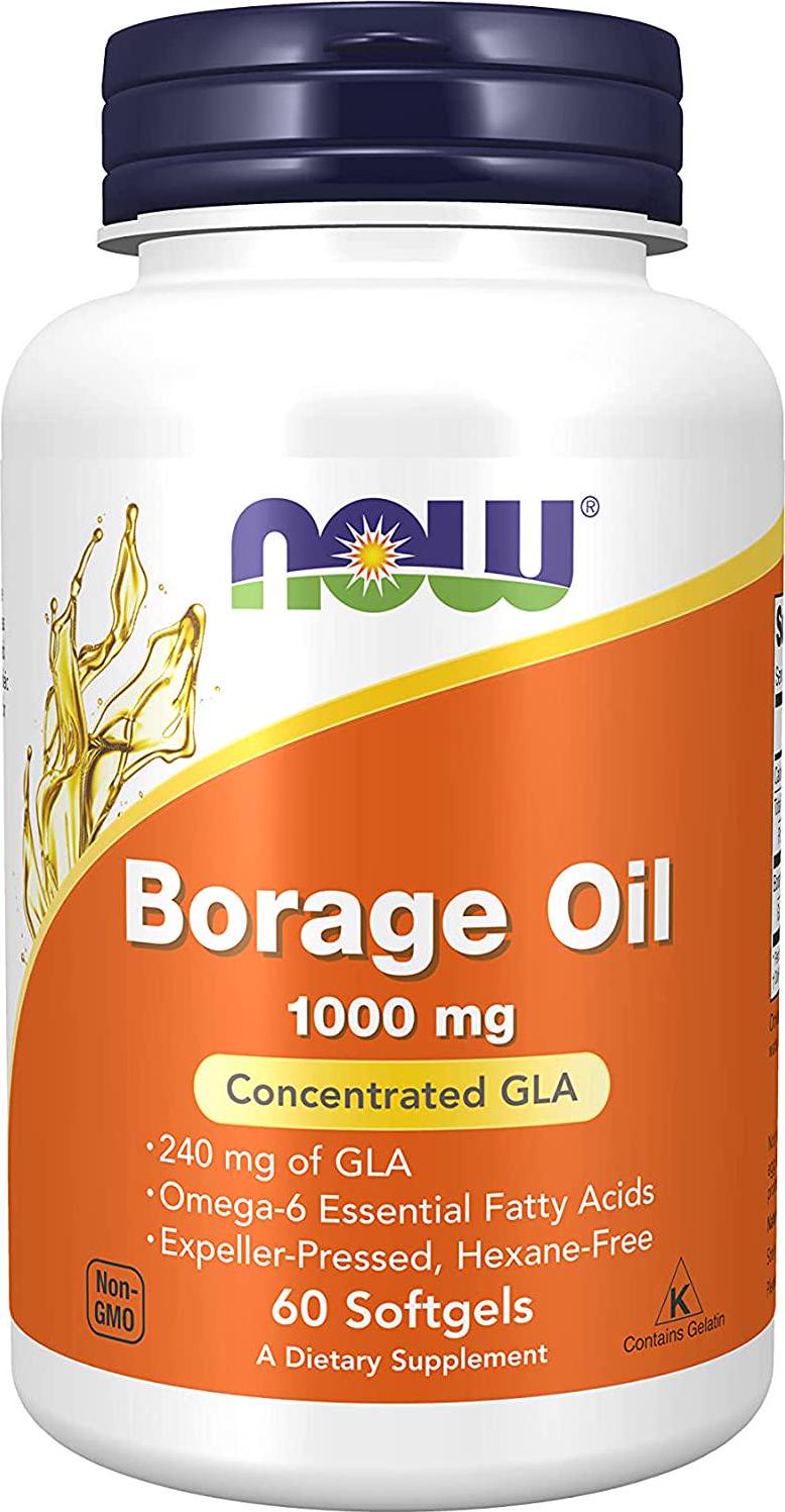 NOW Suplementos, Aceite de Borraja 1000 mg con 240mg de GLA (Ácido Gamma Linolénico), 60 cápsulas blandas