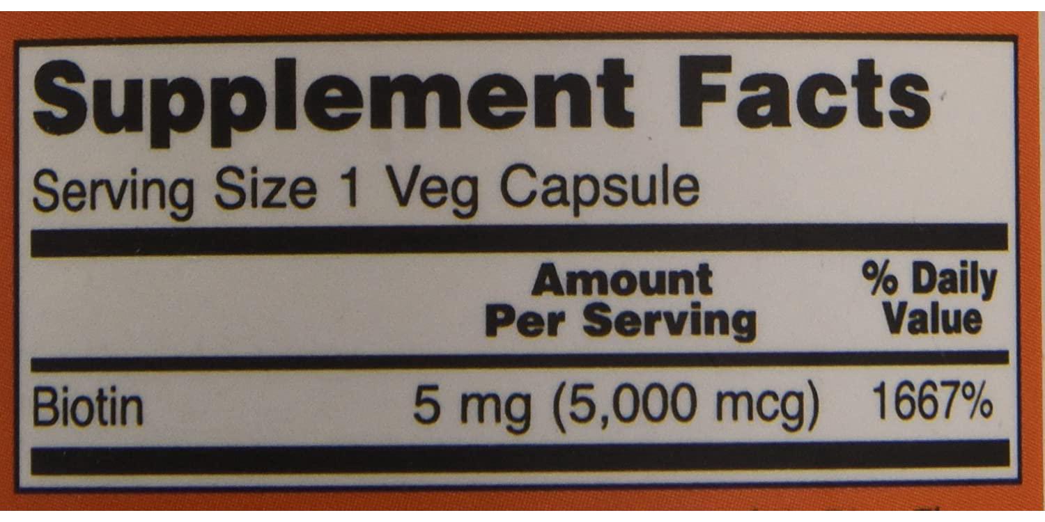 - NOW's Biotin Supplement, with 5,000 mcg, in Vegetarian/Vegan Capsules Supports Healthy Hair, Skin, and Nails
