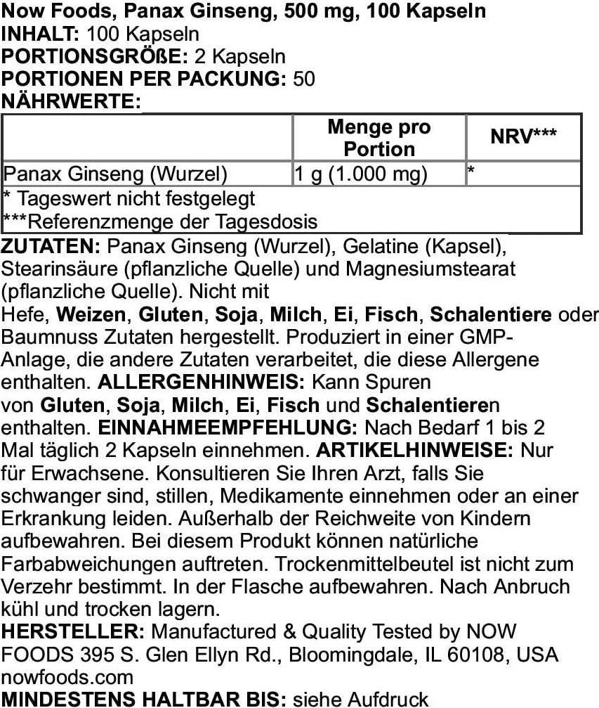 NOW Supplements, Panax Ginseng 500 mg, 100 Capsules