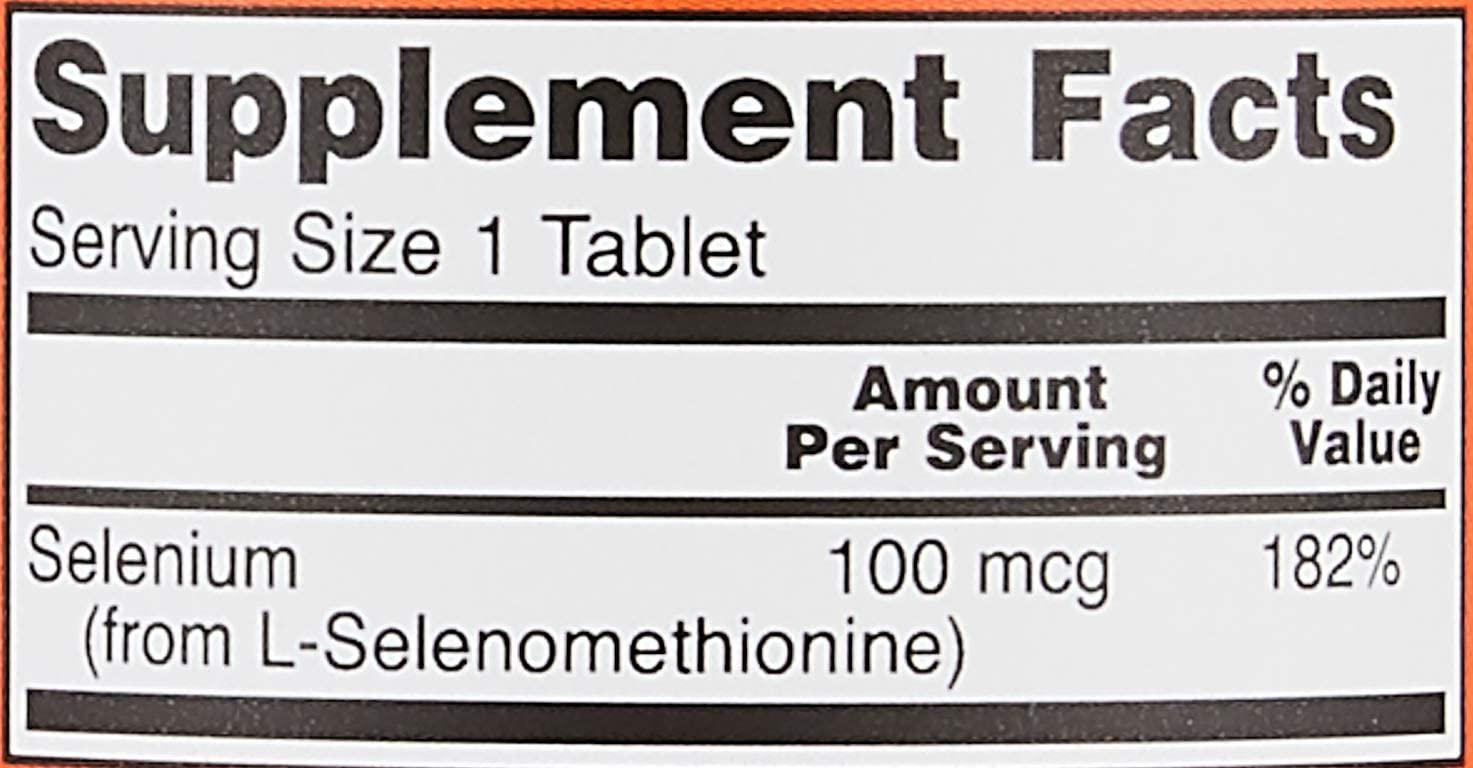 100 tablets, gmp quality assured, non-gmo, now supplements, selenium 100 mcg, yeast-free