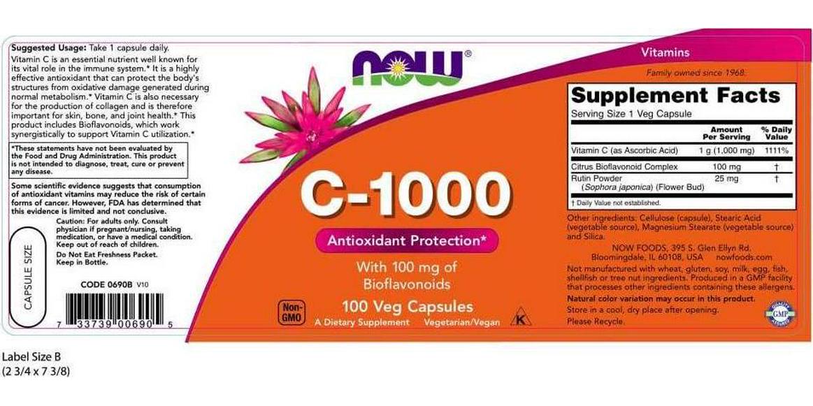 - ANTIOXIDANT PROTECTION*: NOW offers you this yearly supply of vegetarian/vegan Vitamin C-1000 in a convenient easy to swallow capsule! Did you know Vitamin C is essential for the production of collagen* Vitamin C is important for skin, bone, and joint health as well as for supporting the immune system.*