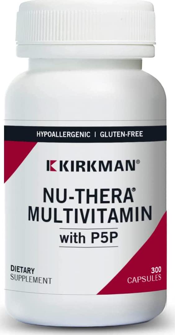 A multi-vitamin with vitamin B-6 and magnesium with condensed potencies of nutrients to support healthy body functioning. Hypoallergenic. Gluten and casein free. Capsules are plant based. Ultra Tested. Kirkman's Nu-Thera products offer condensed potencies of nutrients as compared with Kirkman's popular Super Nu-Thera products, which allows the capsules to be a smaller size. This formulation, which includes pyridoxal 5-phosphate (P-5-P) as the vitamin B-6 source, is intended for those individuals whose physician has determined that the usual form of vitamin B-6 is not being utilized completely.