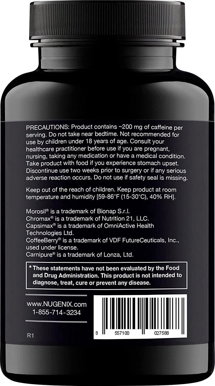 • Nugenix Thermo is formulated with clinical-strength Chromax, Morosil, Capsimax and caffeine to help boost metabolism, reduce body fat, increase energy and suppress appetite