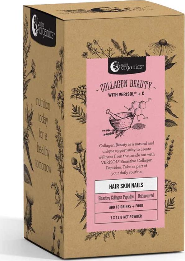 Nutra Organics Collagen Beauty Skin Hair Gut Health 7 Sachets is a natural formulation to reduce skin wrinkles and smooth fine lines, increase skin hydration and elasticity, and support healthy hair and nails. Pack contains 7 sachets of 12 g each.