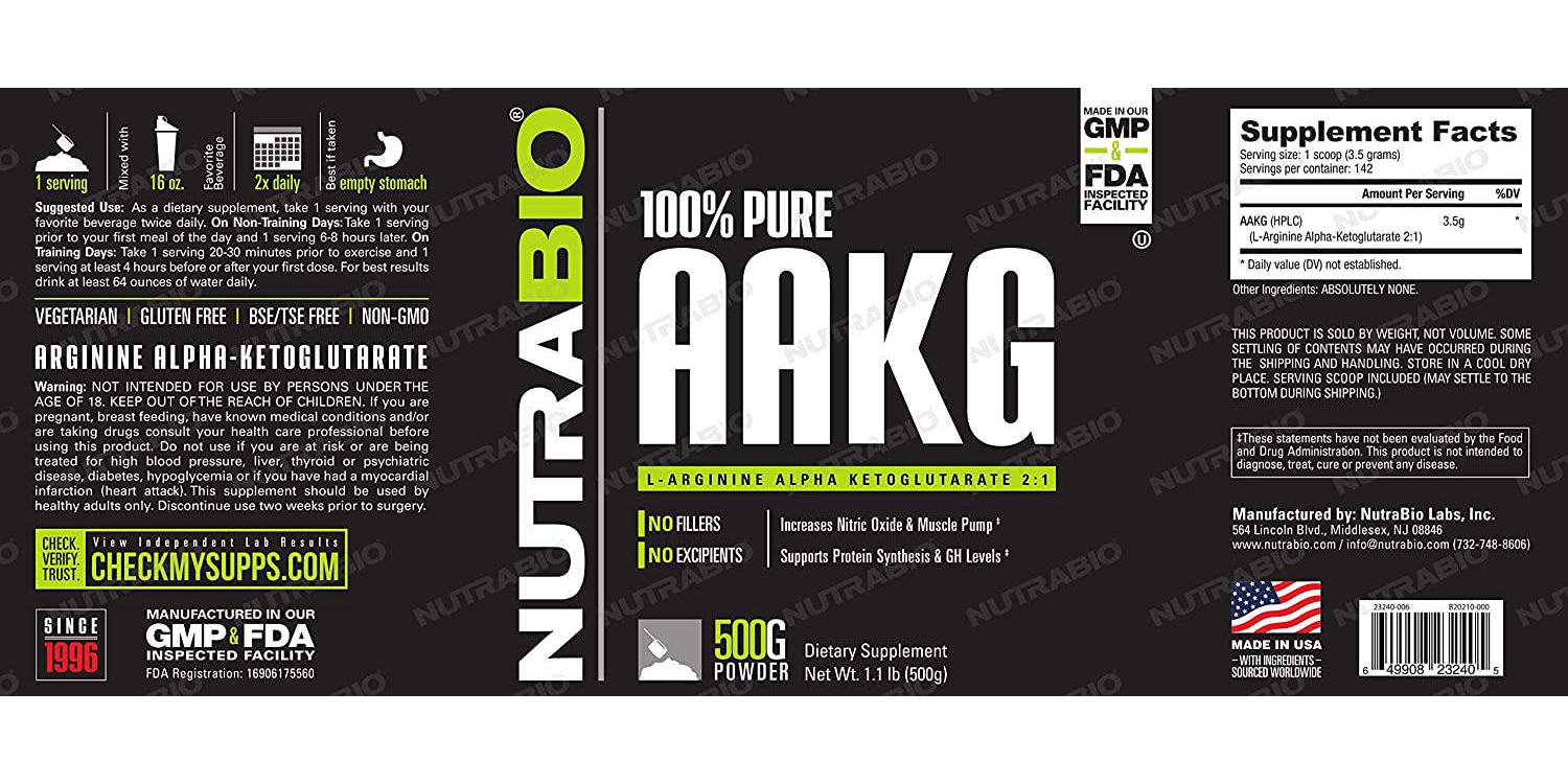 arginine alpha ketoglutarate, endurance, nitric oxide booster, nutrabio, pure aakg, vascularity