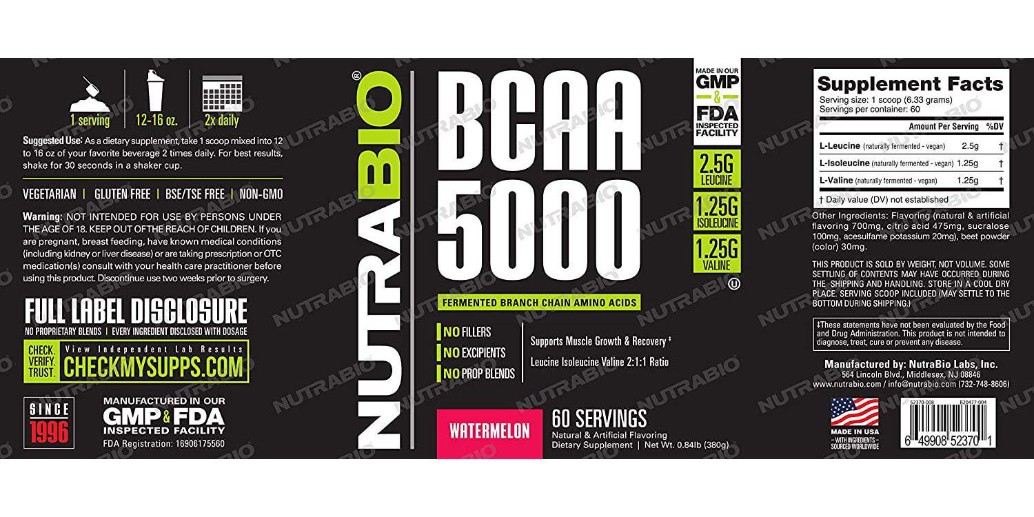 bcaa 5000, lean muscle growth, nutrabio, recovery support, watermelon powder
