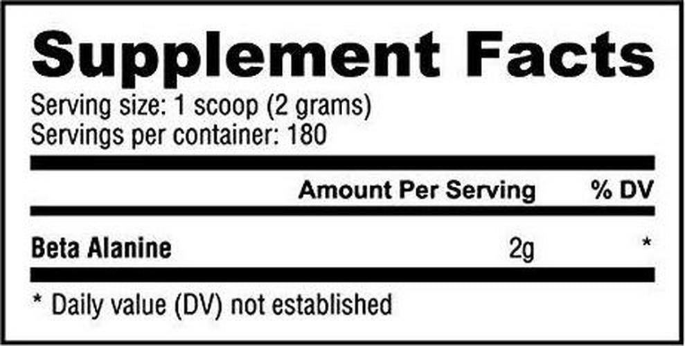 NutraBio Beta Alanine, 360g Powder Pre-workout supplement for increased strength and muscular endurance. Beta-Alanine is a lactic acid buffer that increases training capacity giving you the ability to train harder and longer. Weight training and athletic activities cause your body to produce lactic acid. This causes muscle pH to drop and become more acidic due to the large amount of hydrogen ions produced, which is not optimum for athletic performance. As muscle pH drops, your muscle's ability to perform at its peak level decreases. Beta Alanine works by increasing muscle carnosine levels, which in turn, works as a muscle buffer by soaking up these extra hydrogen ions. In scientific studies, Beta Alanine has been shown to increase strength, power output, endurance, exercise capacity, muscle mass, and delay the onset of neuromuscular fatigue. Beta Alanine is perfect for anyone who practices a sport where strength, power and endurance are needed. NutraBio Beta Alanine is a raw unflavored powder. NutraBio. Made in the USA. WHY SETTLE FOR ANYTHING LESS WHEN YOU CAN HAVE THE BEST
