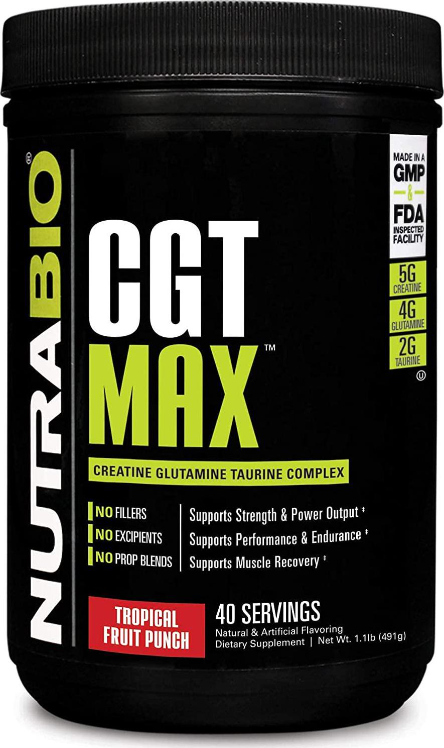 creatine powder, glutamine supplement, muscle recovery, nutrabio cgt-max, strength supplement, taurine formula