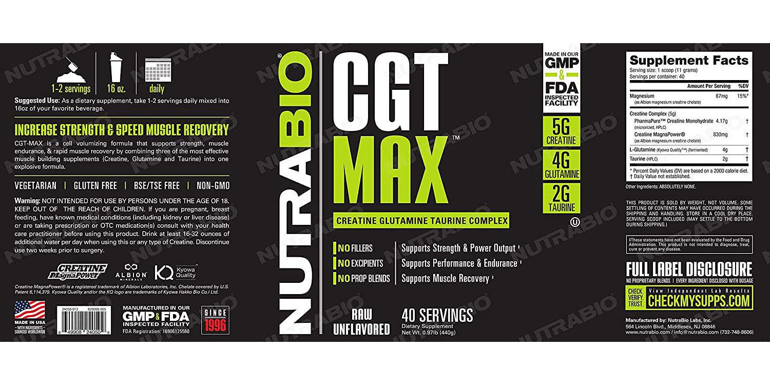 creatine, glutamine, lean muscle mass, nutrabio cgt-max, recovery, taurine