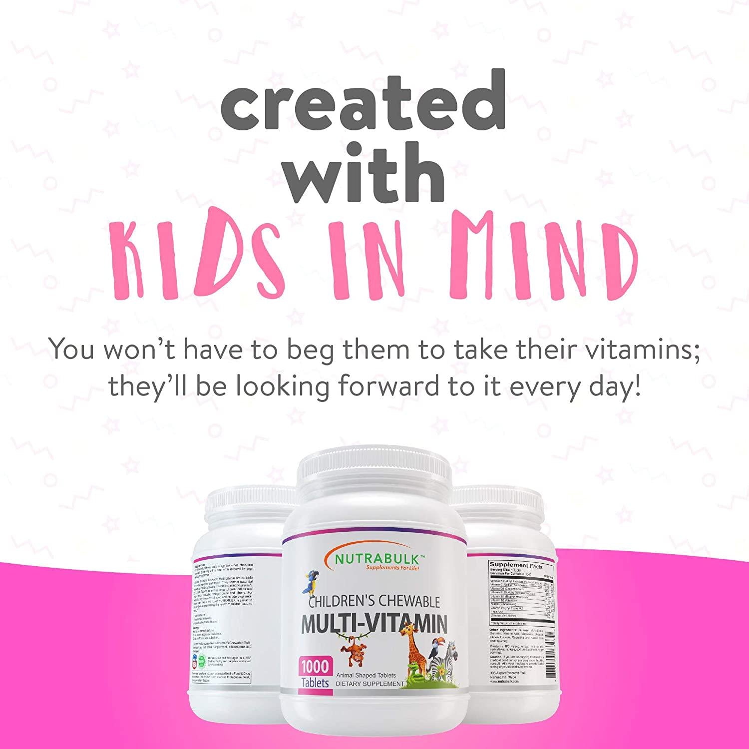 NutraBulk Children's Chewable Multi-Vitamin Tablets for Kids to Support Immune, Bone, and Brain, Contains All Natural Vitamins, Minerals, B Complex. Cherry Flavor (1000 Count)