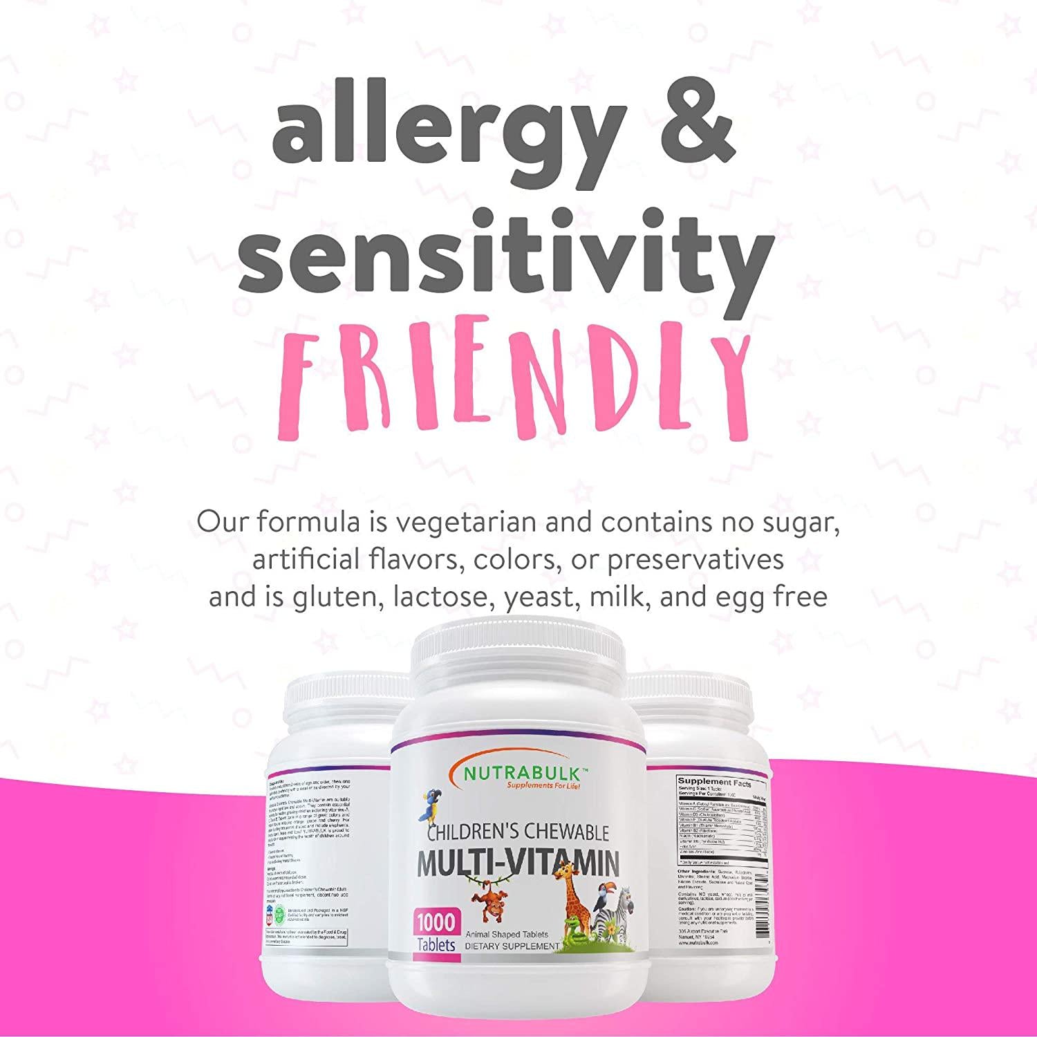 Don't let nutritional deficiencies stand in the way of your child's health. Packed with vitamins A, C, D3, E, B1, B2, B6, niacin, folic acid, and zinc, NutraBulk Children's Chewable Multivitamins fill in nutrient gaps in the diet and provide a solid foundation for children's long-term growth and development. We share a formula with the #1 selling brand of chewable vitamins in the United States, but switched up the shapes and flavors to the fun and delicious ones that kids love: elephants, hippos, lions, and tigers in natural orange, grape, and cherry flavors. You won't have to beg them to take their vitamins; they'll be looking forward to it every day! Our formula is vegetarian and free from: Sugar