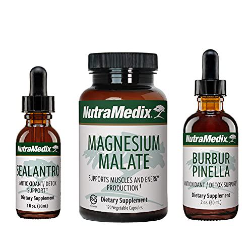 NutraMedix Detox Set - 3-Piece Kit with Sealantro, Burbur-Pinella and Magnesium Malate for Cleansing, Detox and Daily Wellness Support - Plant-Based Liquid Detox Drops and Daily Capsules