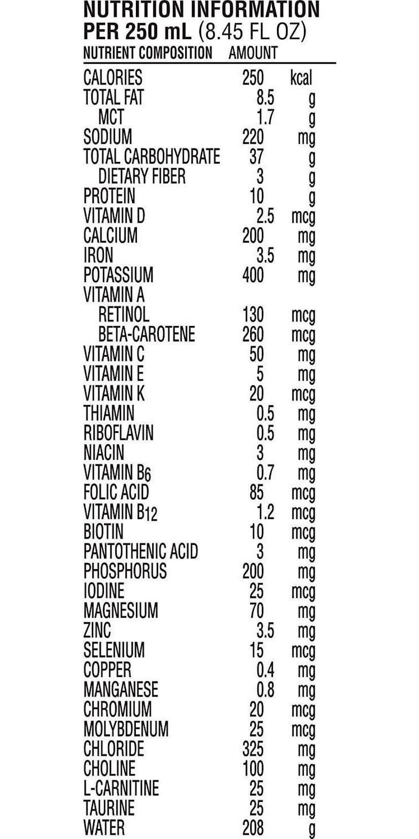 - Complete Nutrition: 1.0 calories/mL (1000 calories/1000 mL); 40 grams of protein per 1000 mL of high-quality casein (from milk) and soy protein blend. 12 grams of fiber per 1000 mL fiber to help support normal bowel function and digestive health
