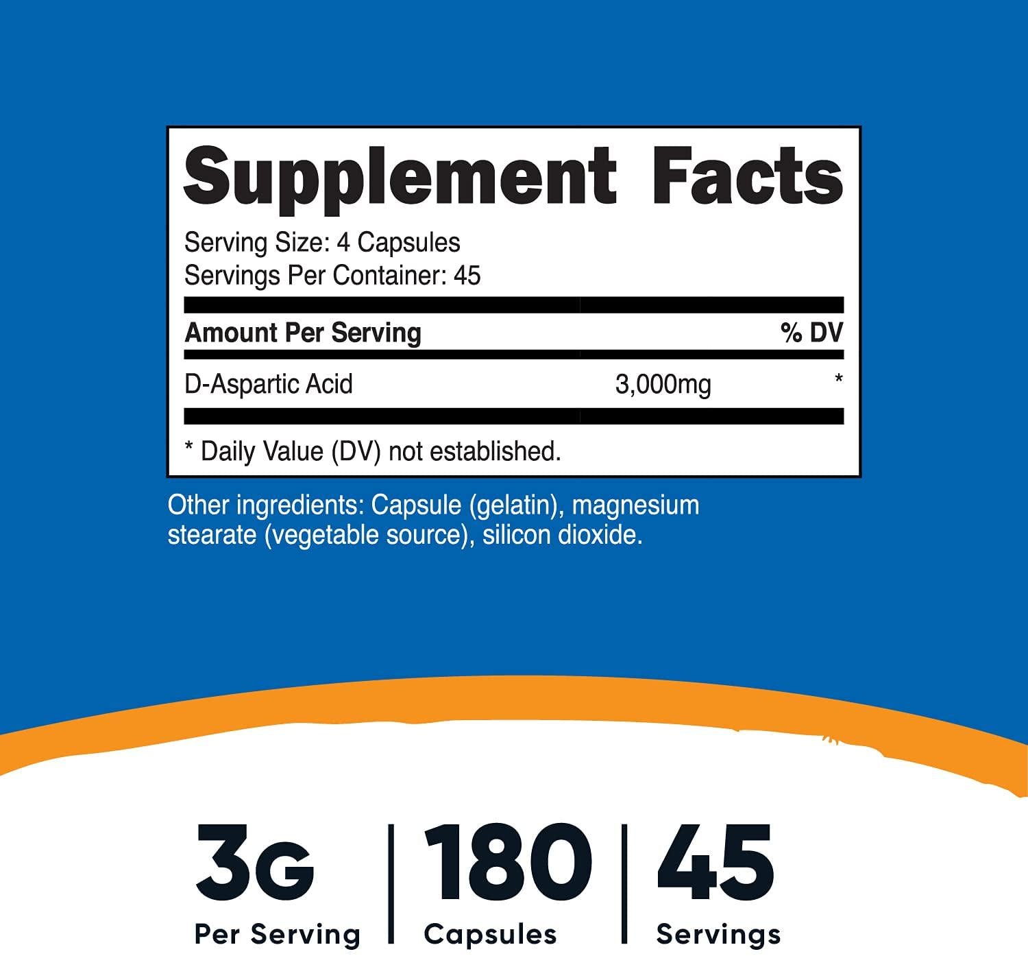 Nutricost D-Aspartic Acid (DAA) Capsules 3000mg Per Serving (180 Capsules) - Non-GMO