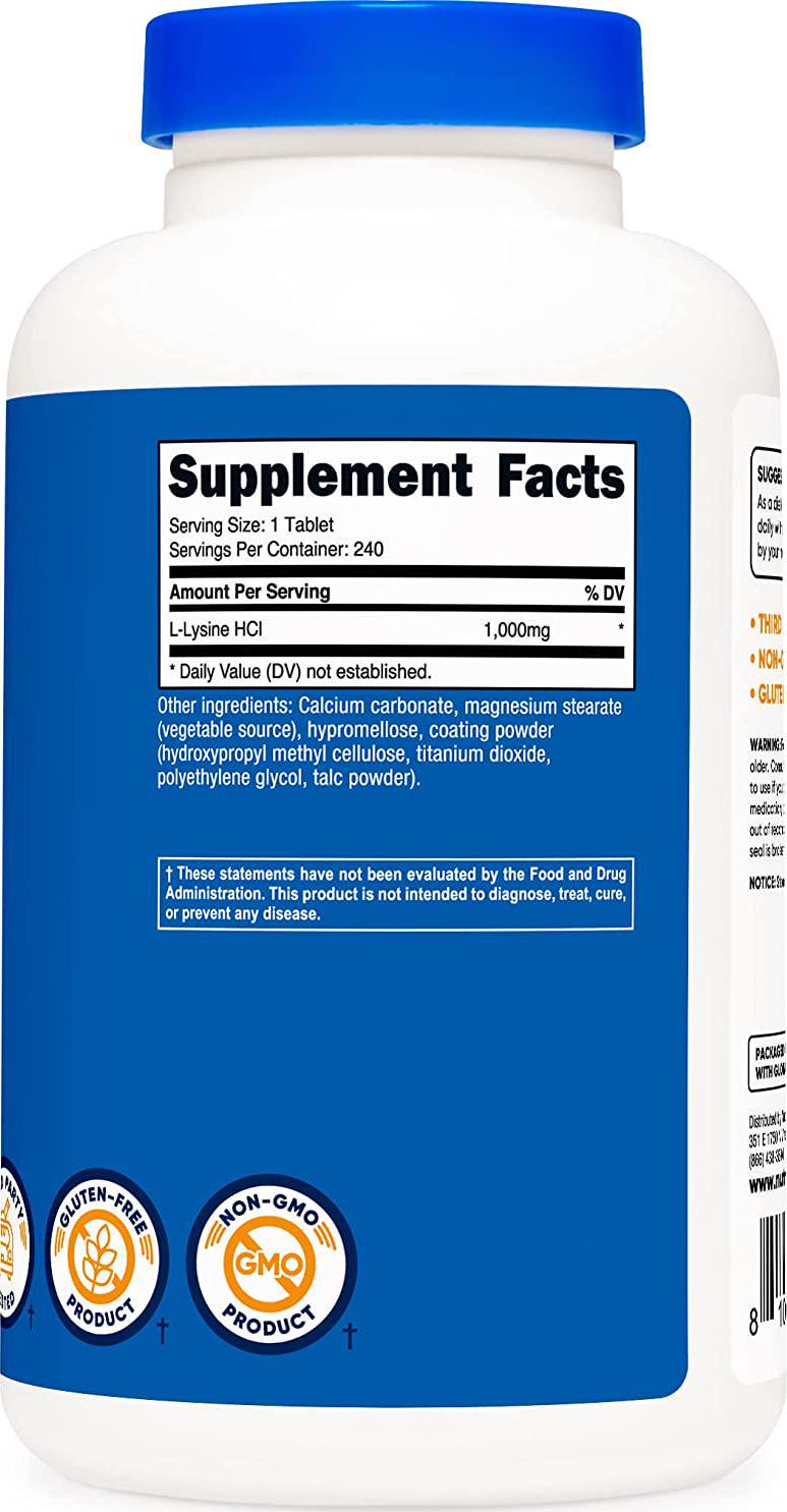 Nutricost L-Lysine 1000mg, 240 Tablets - Gluten Free, Non-GMO, and Vegetarian Friendly