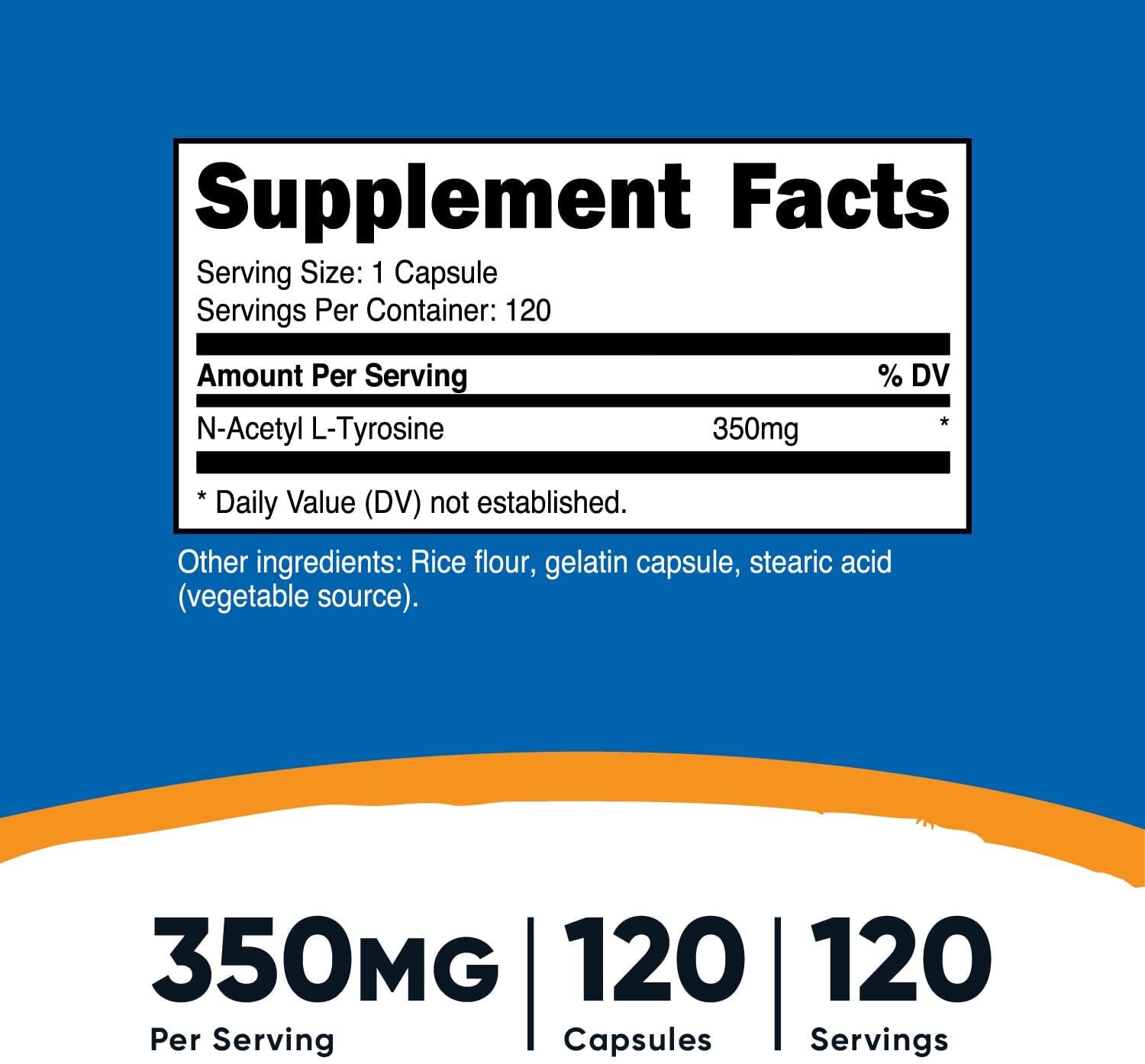 350mg, capsules, gluten free, n-acetyl l-tyrosine, non-gmo, nutricost